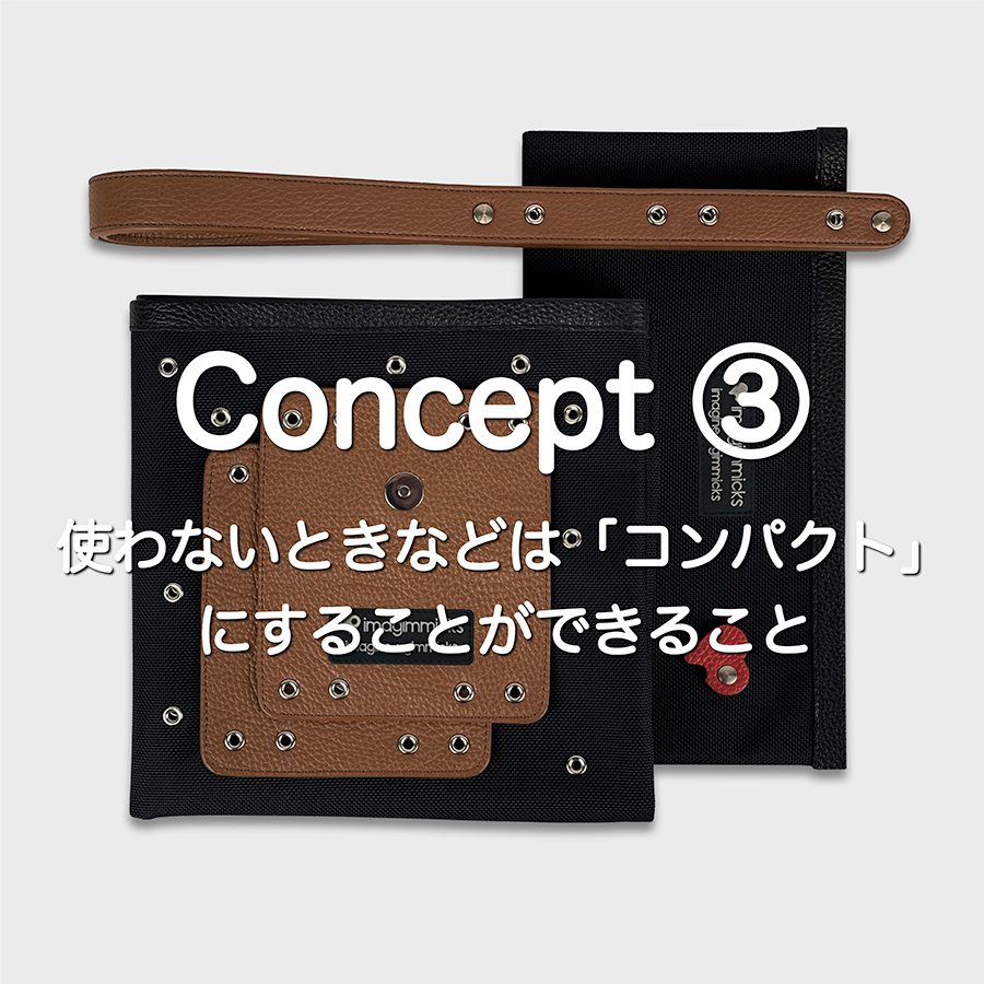 独自のギミックをデザインとして取り入れることで、自分スタイルに作り変えて使うことができるようなバッグをイメージして作りました。