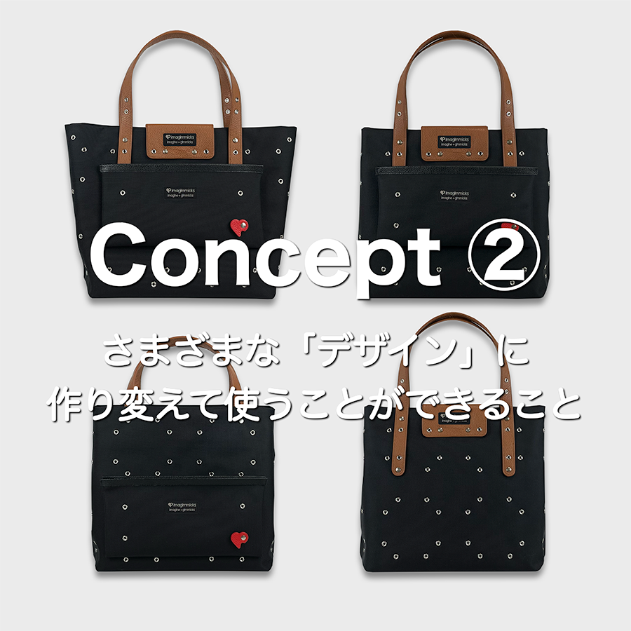 という2つの意味合いから、袋を折ったり、付属品のパーツを取り付けたり、付け替えて使っていく中で